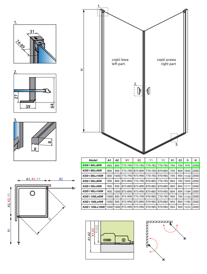 Strømberg Noma 120 bruseniche - 80x80 cm - Klar glas/børstet gunmetal